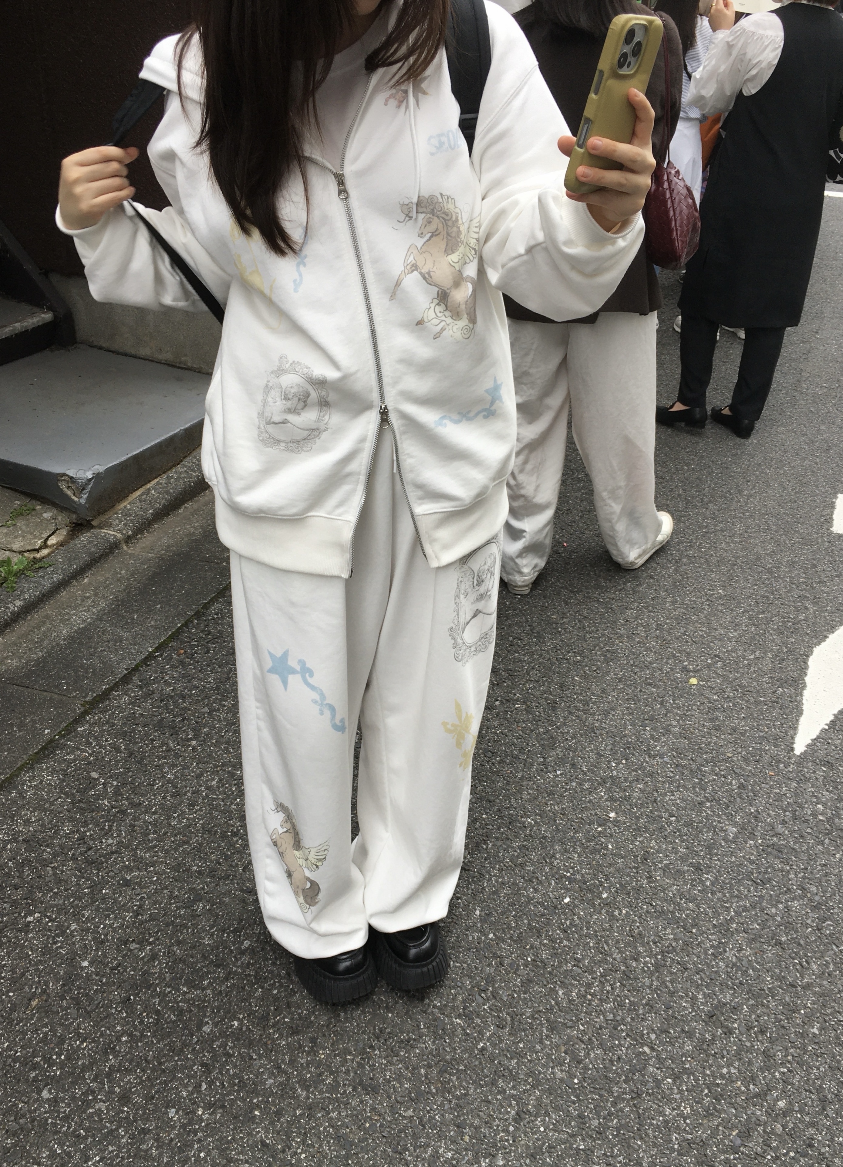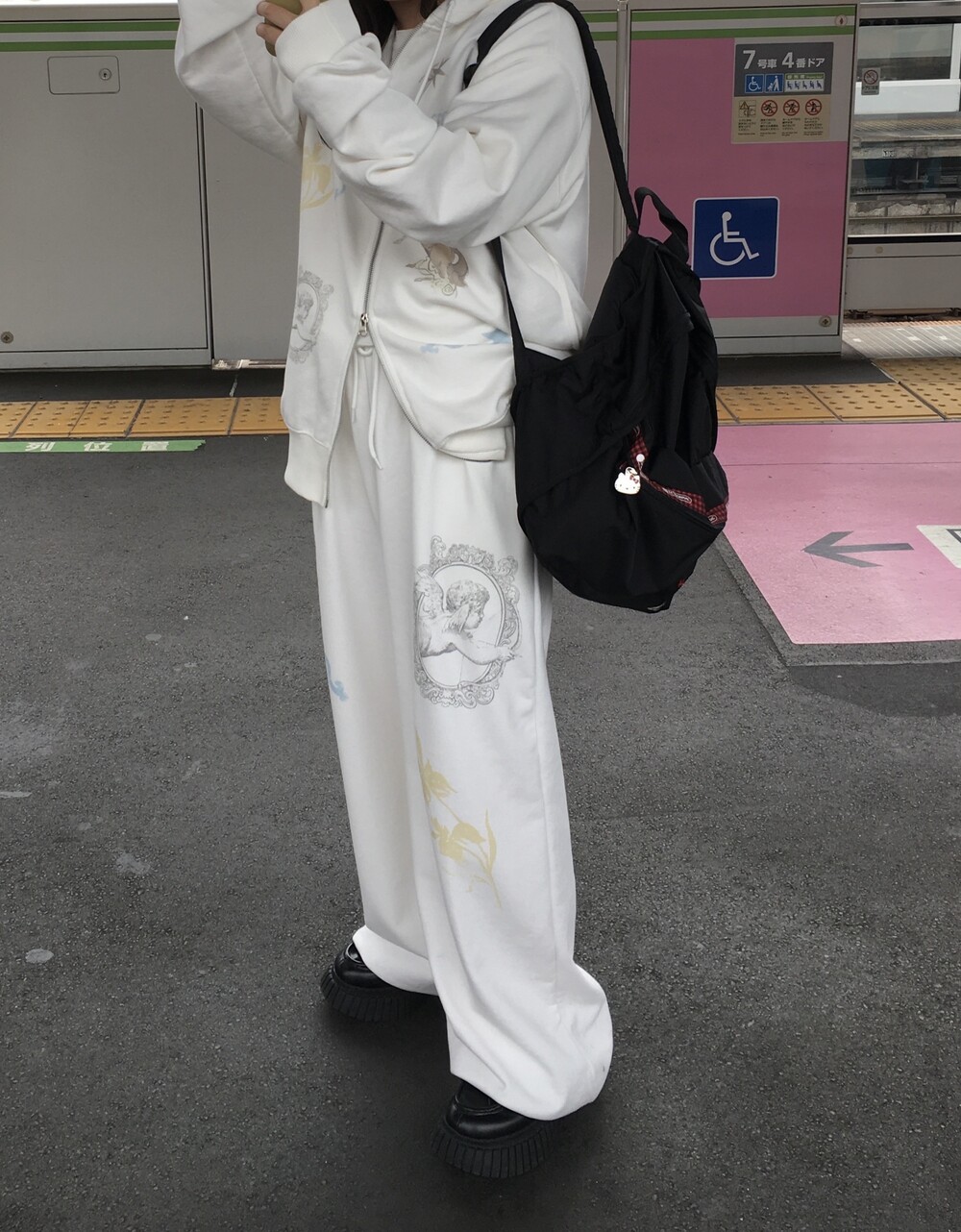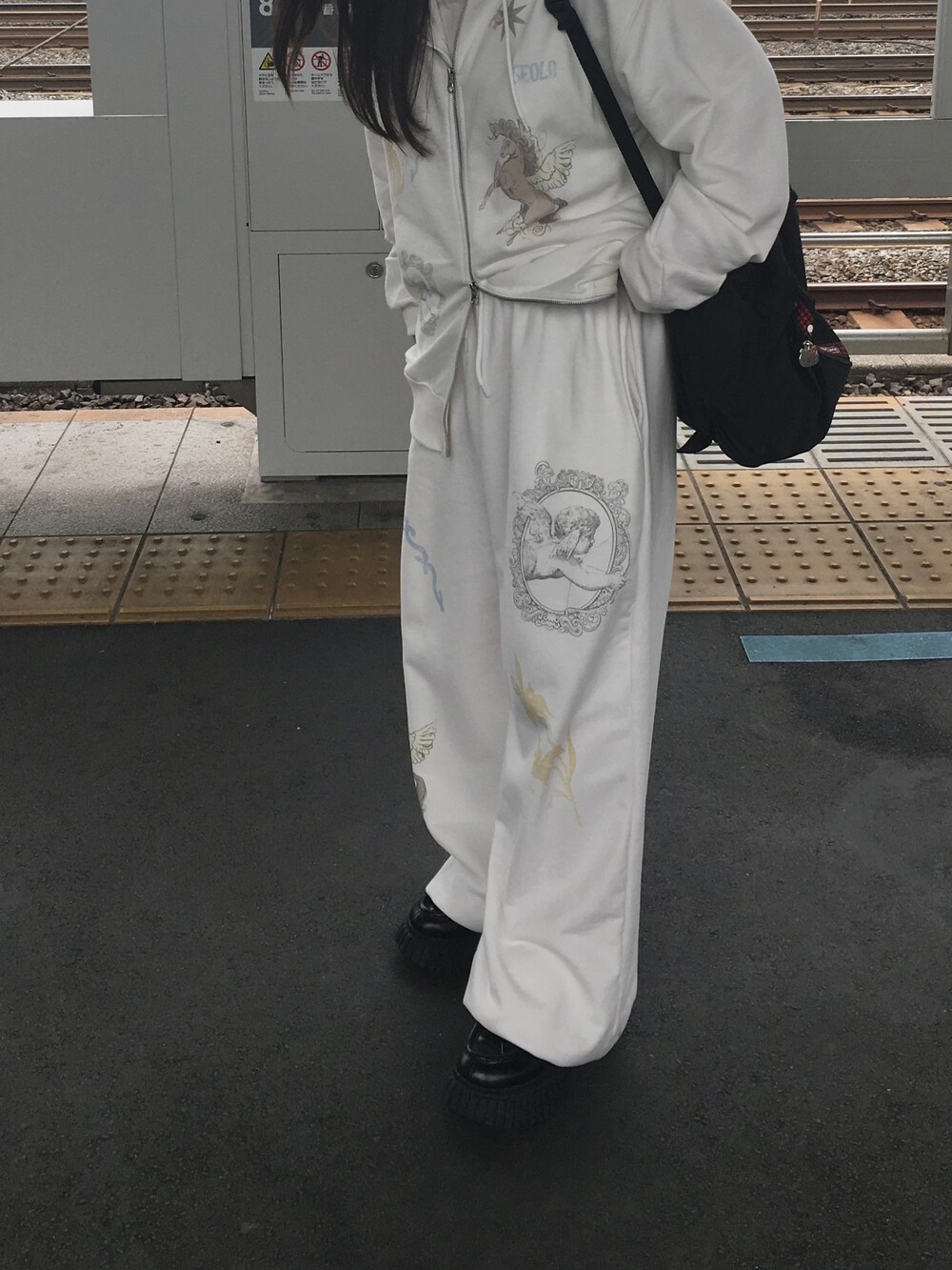팬츠 총길이102 / 허리 밴딩 34 / 엉덩이 56 / 허벅지30 / 밑위 34 (밑단스트링있음)