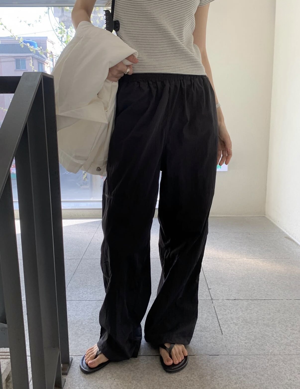 (S사이즈) 총길이99 / 허리35 (밴딩) 엉덩이48 / 밑위 33 / 밑단 스트링조절가능