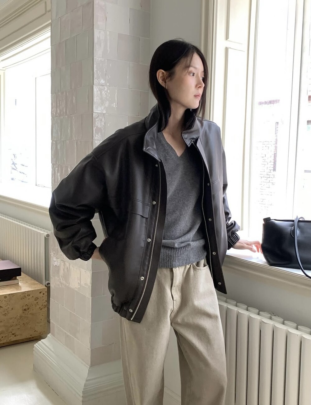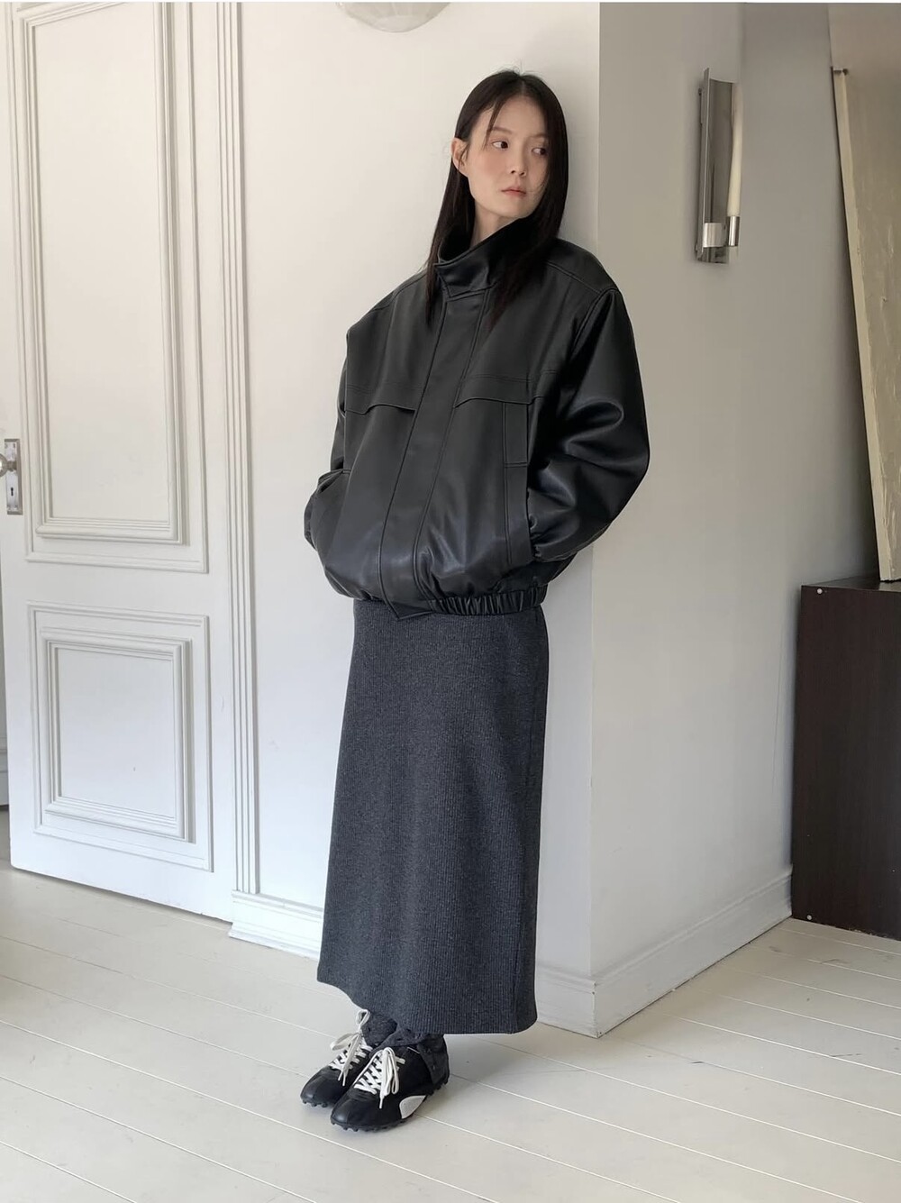 비건 레더 점퍼 (누빔)