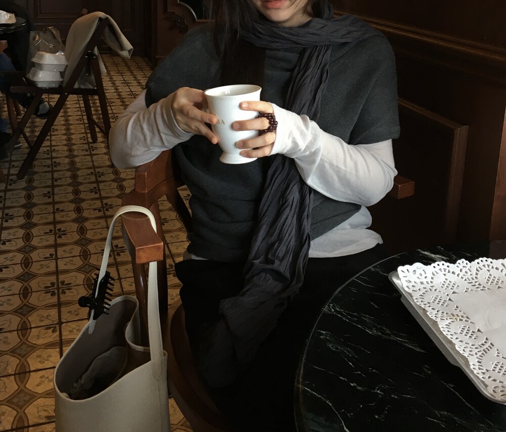 드레이프 숄 니트