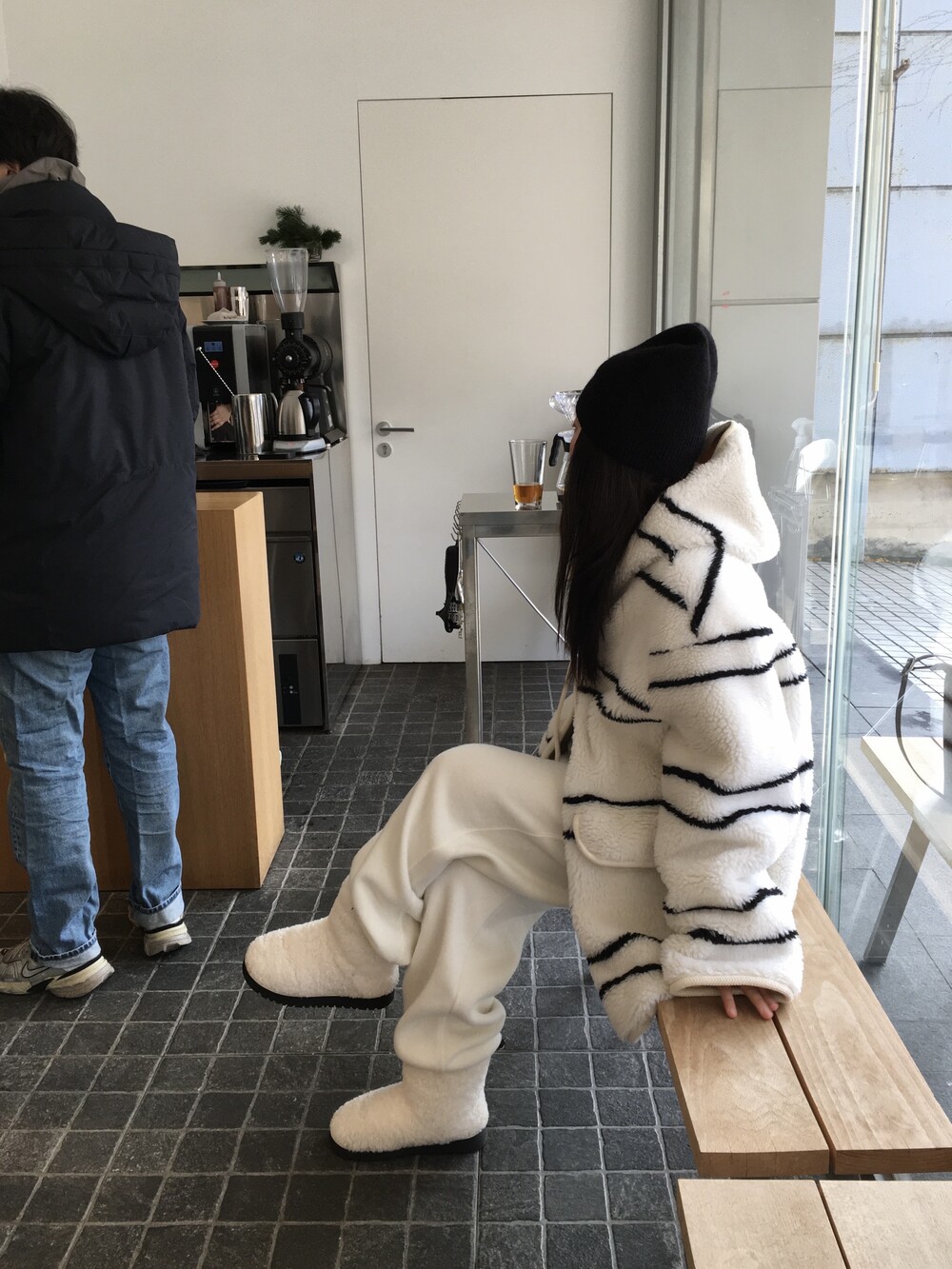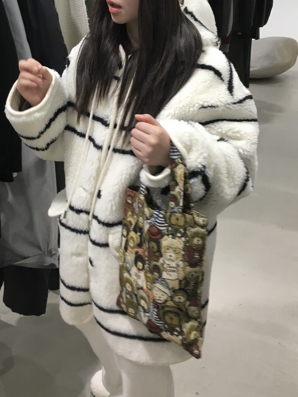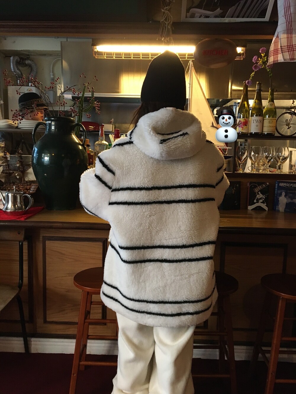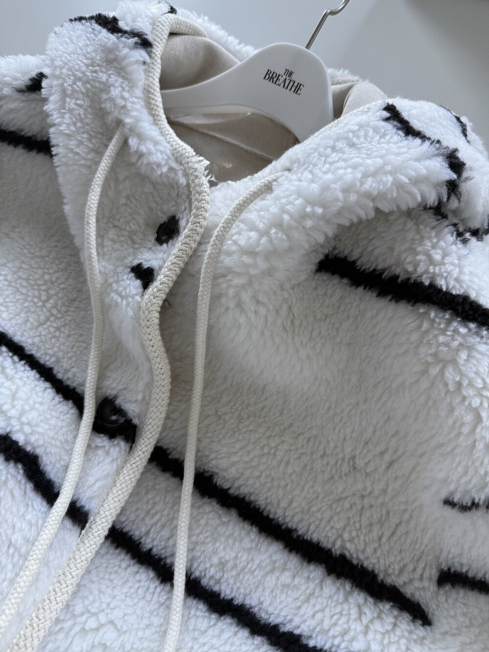 스트라이프 후드 무스탕