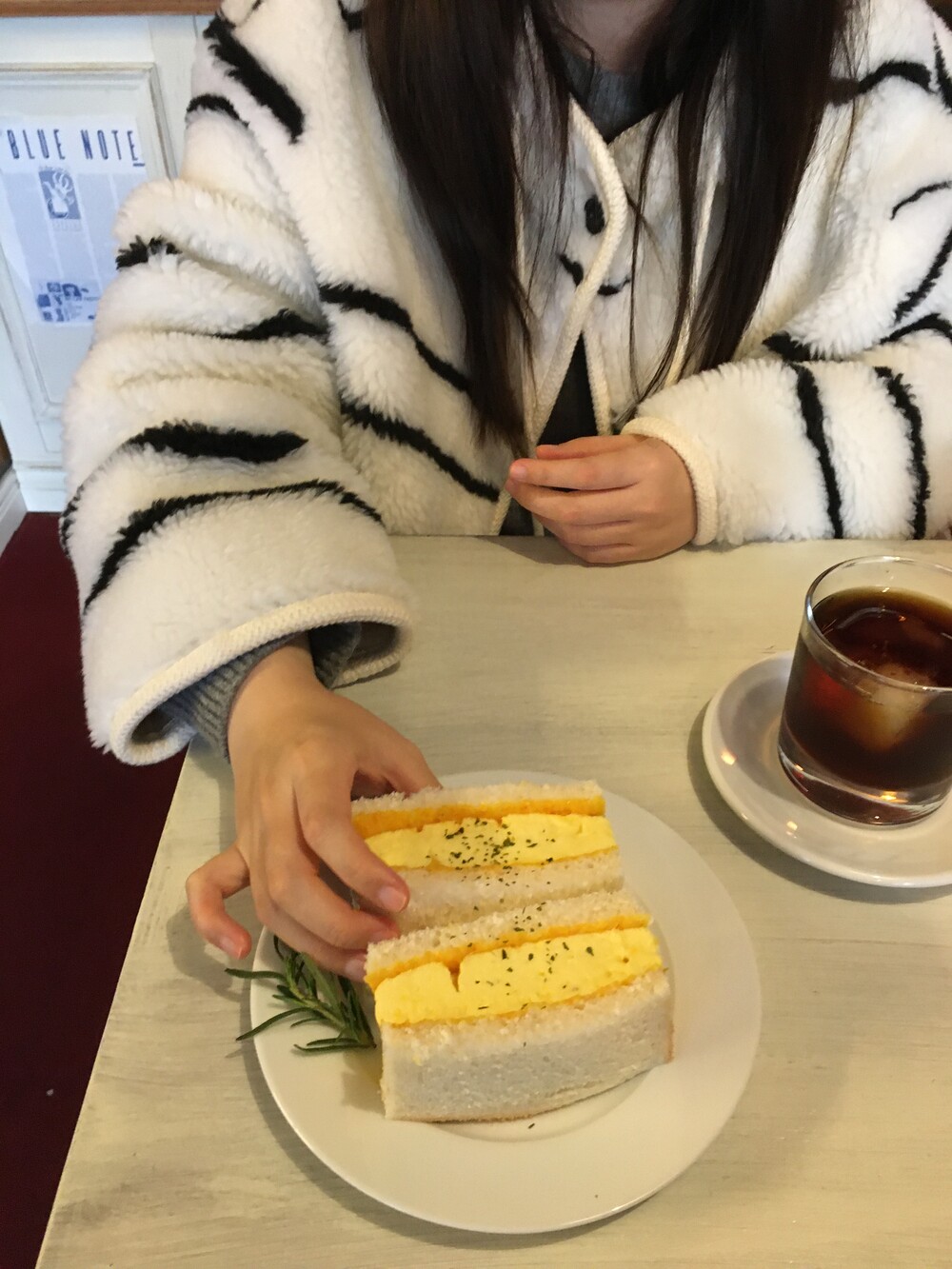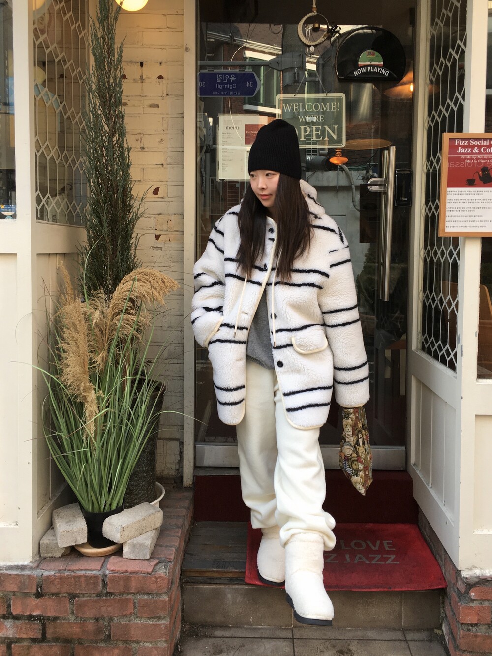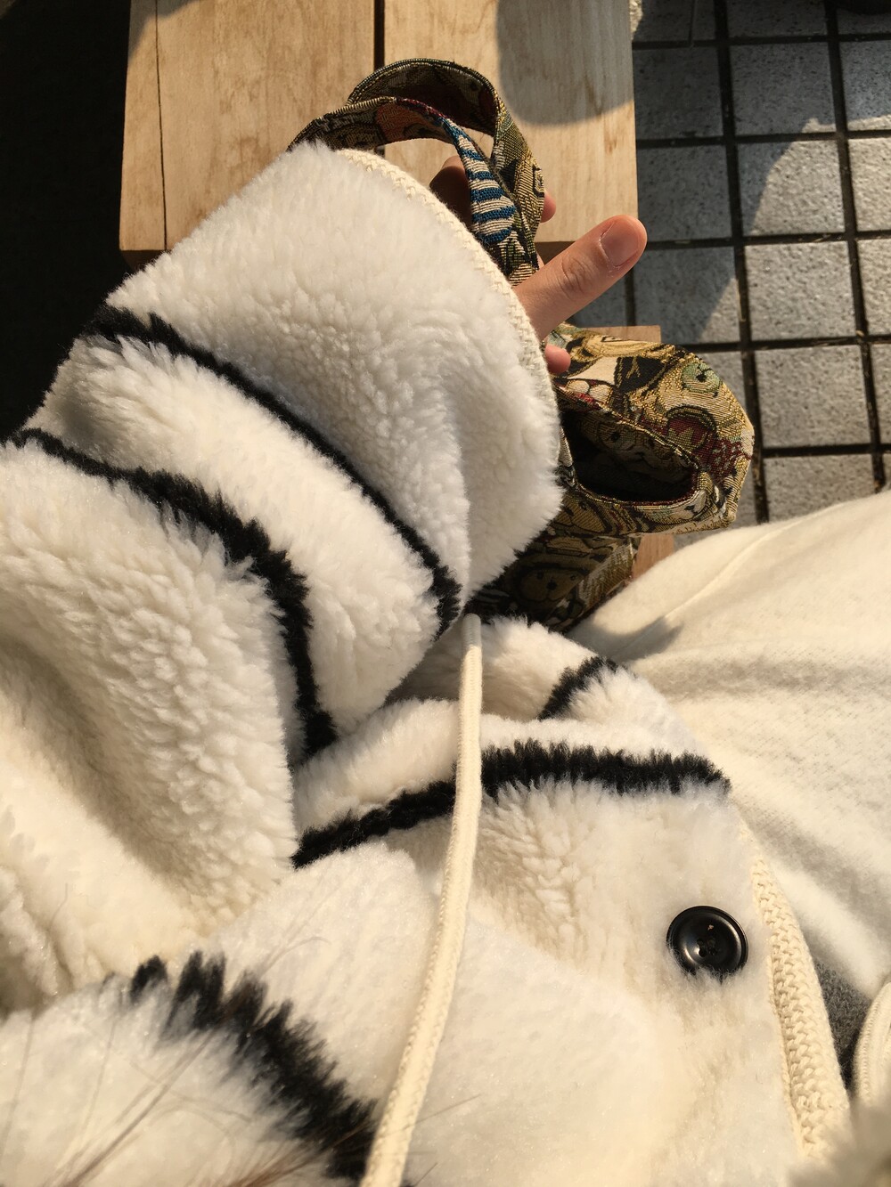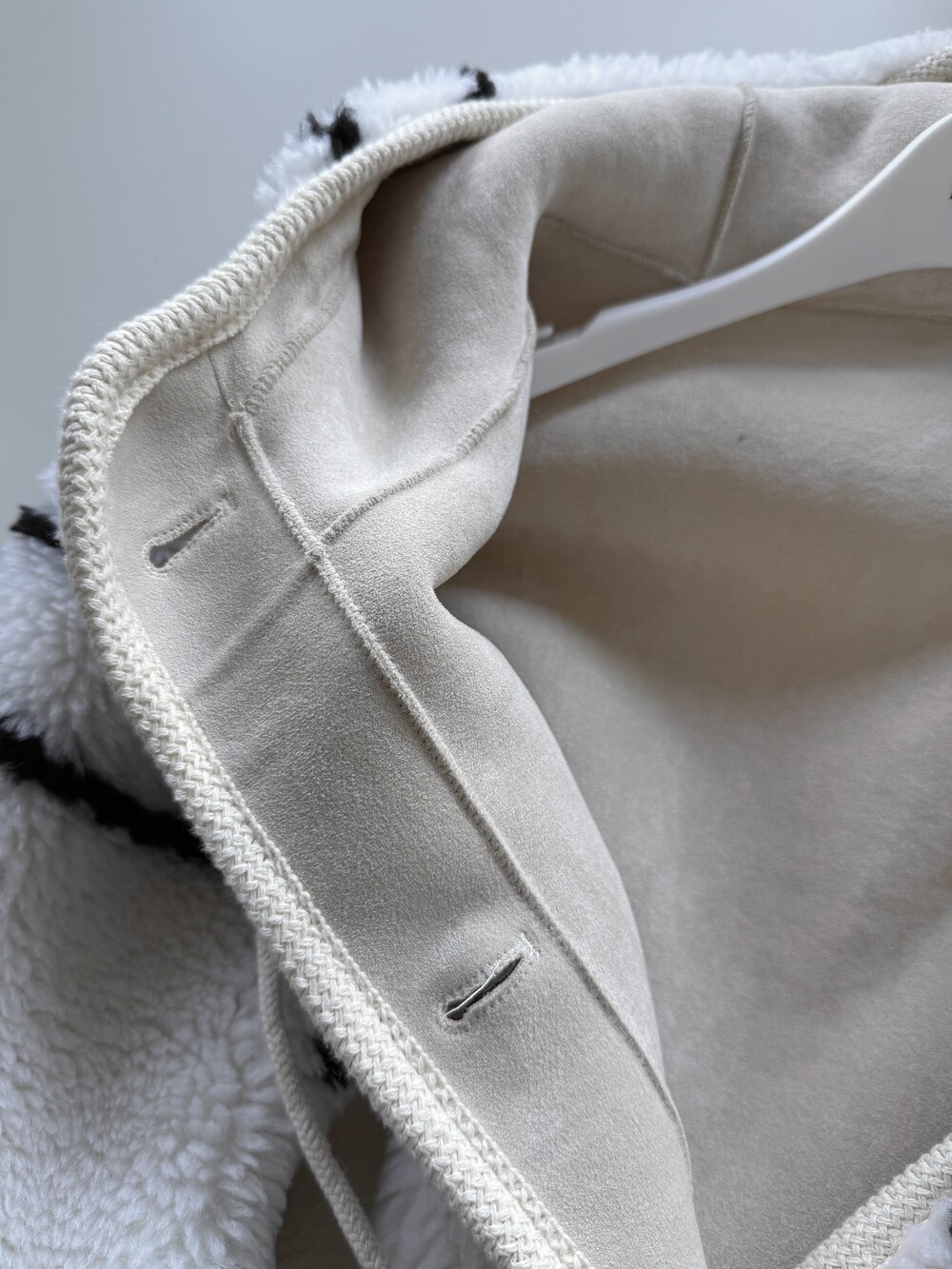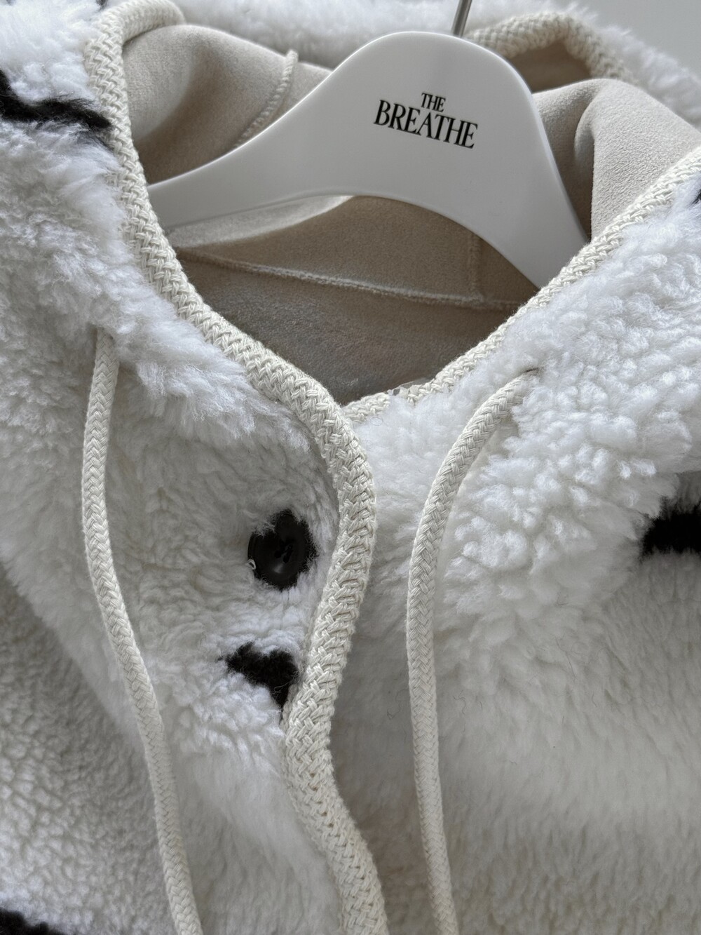 스트라이프 후드 무스탕